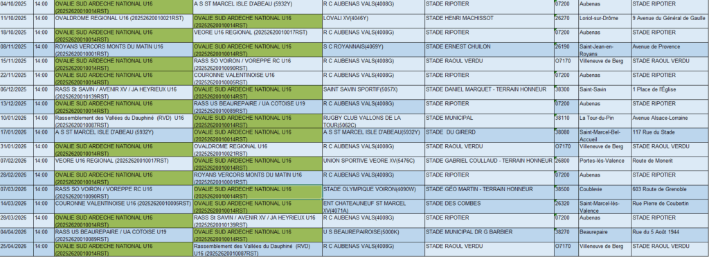 GROUPE U 16 OVALIE SUD ARDECHE – SAISON 2025/2026
