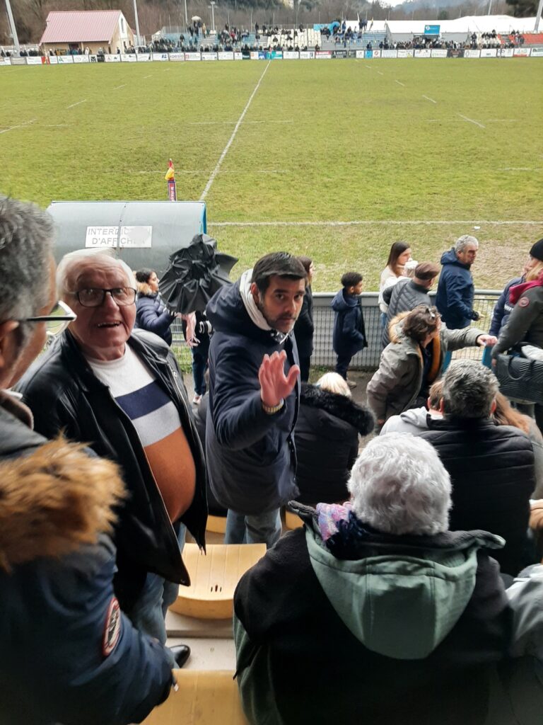 J’ai eu la chance de regarder le match en compagnie de Mathieu Lartot et de son fils Noah, joueur du RCAV. Excellente compagnie.