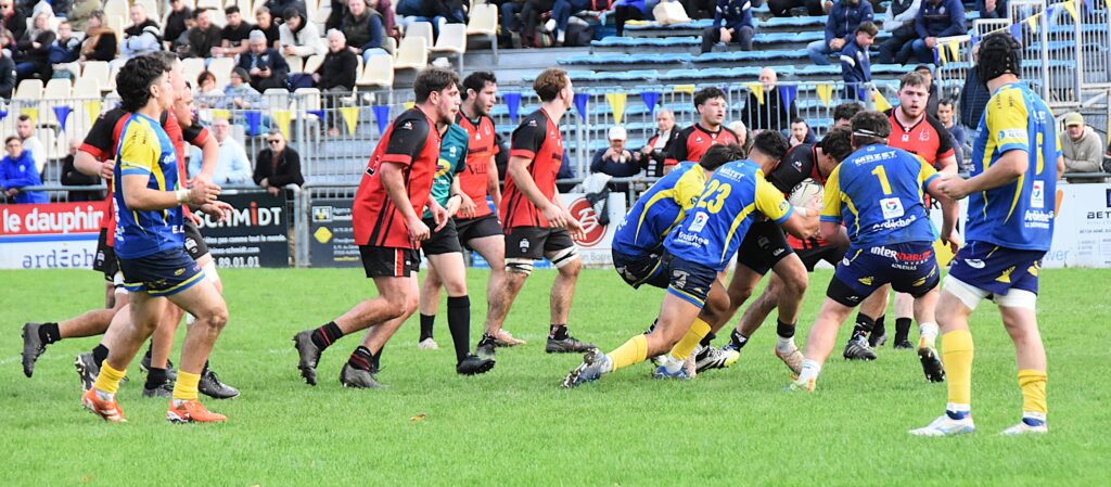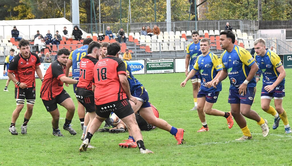 Les Rouges et Noirs l’emportent sur le score du 31 à 17. Nos Jaunes et Bleus les ont privé du Bonus Offensif, grâce à nos trois essais contre quatre à Rumilly.