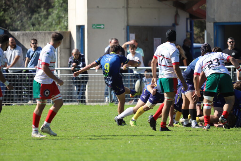 Derrière le pack des Jaunes et Bleus, il y a un numéro neuf à la baguette, Eloan Boissier, pensionnaire du CEL (Centre d’Entraînement Labellisé). Un numéro neuf qui se caractérise aussi par ses coups de pied face aux perches.