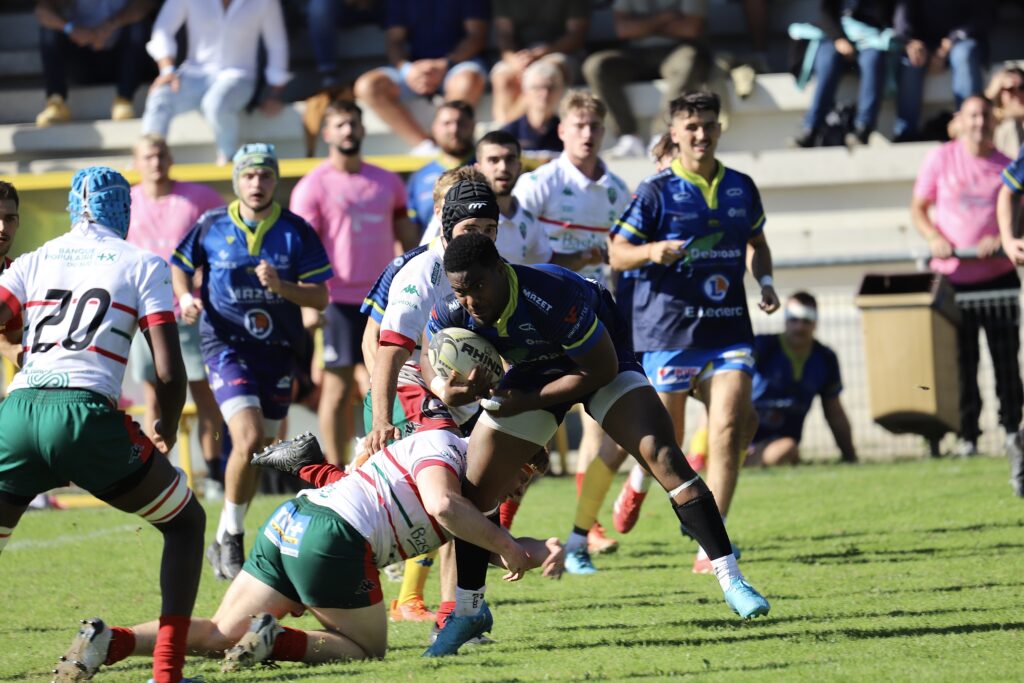 Dès le début de la seconde mi-temps, les Jaunes & Bleus reviennent dans le trafic avec un essai de Niang, transformé par Boissier. 17 à 16.