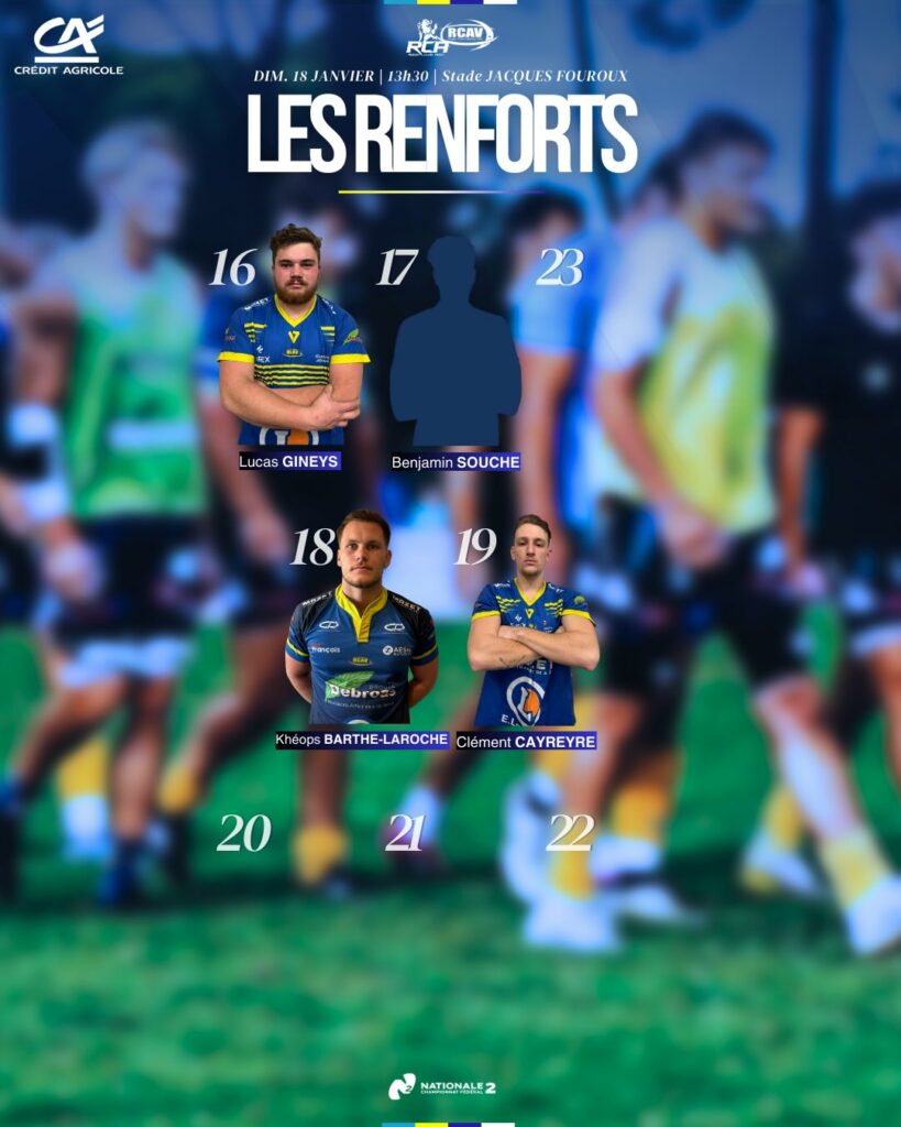 Le 3 juillet 2025, la FFR a dévoilé les poules 2025/2026, de Nationale et de Nationale 2. Ainsi que tous les détails sur les formats des deux compétitions… Le RCAV se retrouve dans la poule 2 de Nationale 2 avec trois clubs de l'Ouest : Auch, Fleurance et Lannemezan....
