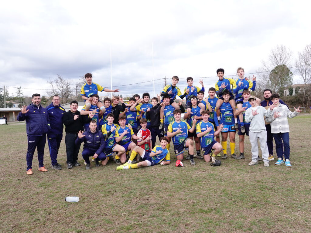 Essais : Ibouroi Zouleiri (10éme et 46éme), Arnal (35éme), deux transformations Mompeyssin.