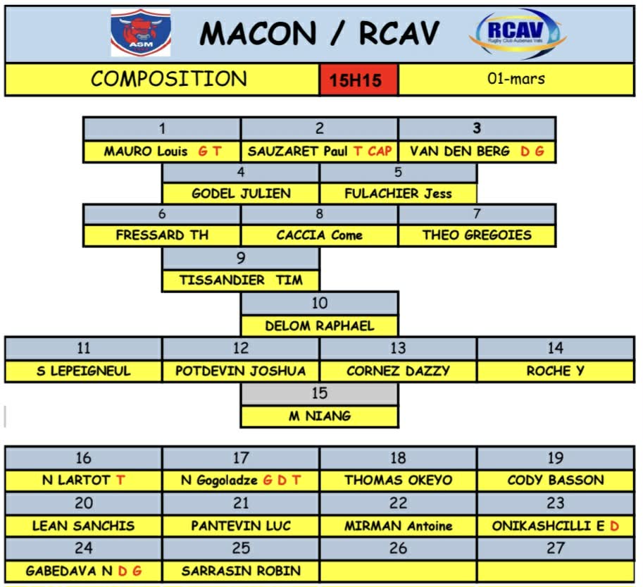 Une nouvelle semaine commence après le déplacement à Annemasse. Demain, mardi 25 février 2025, une matinale Rugby est organisée en lien avec le club Partenaires. Le RCAV est focus sur la réception de Rumilly, le 2 mars 2025 à Dugradus ALLEZ ALLEZ JAUNE ET BLEU ALLEZ...