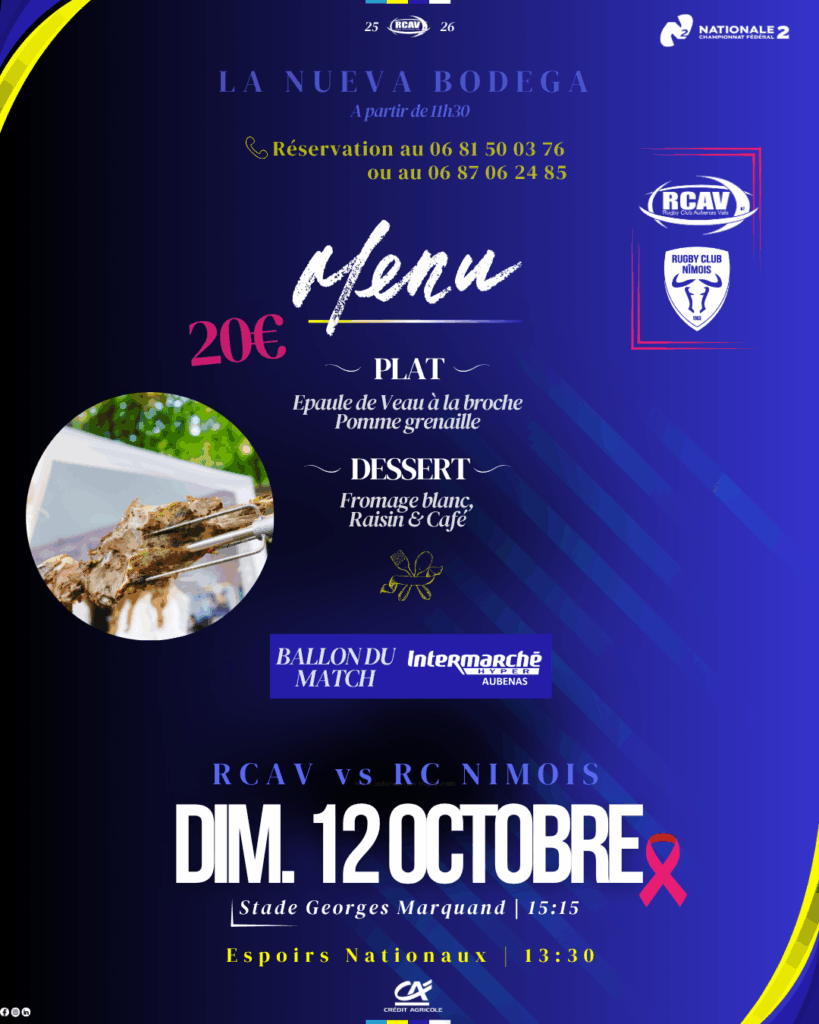 Venez vous retrouver dans l’avant-match à la Nueva Bodega du RCAV à partir de 11h30.