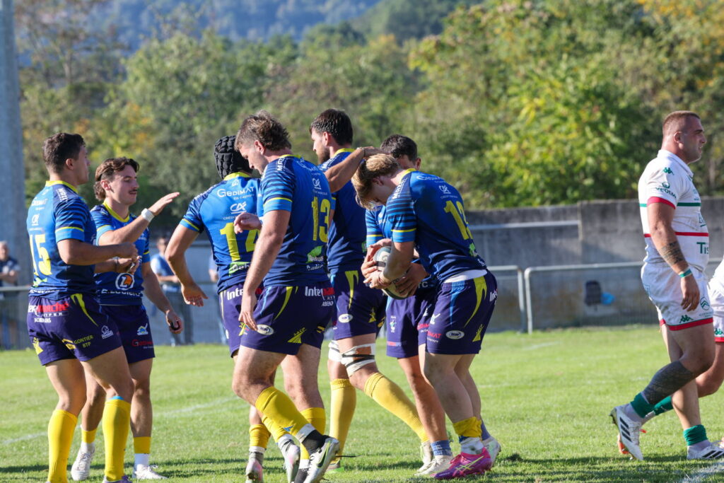 Puis en seconde mi-temps, les visiteurs bien pilotés par l’ancien demi de mêlée Jaune & Bleu, formé à Tricastin, Simon Benoist, passent à l’offensive.