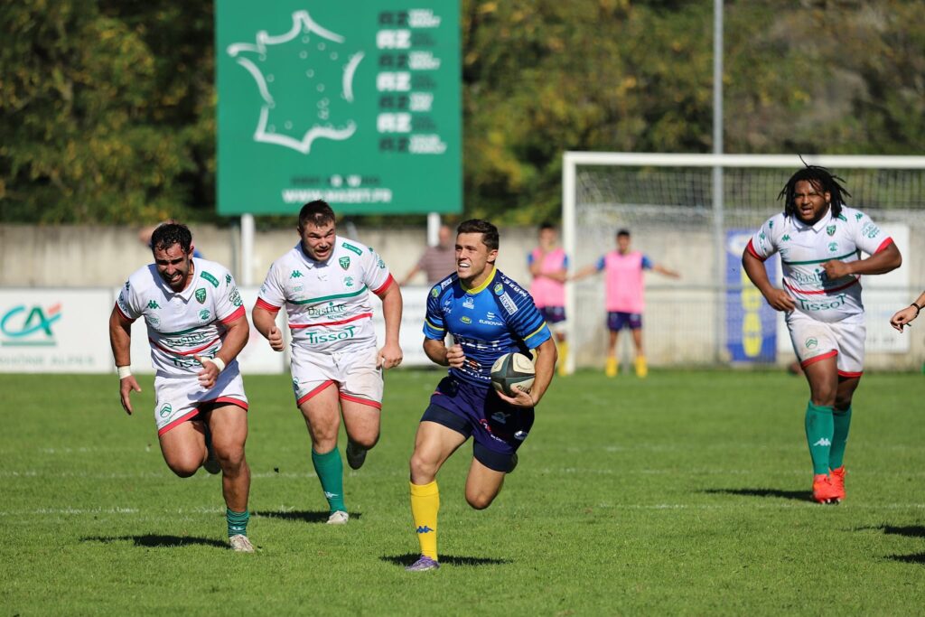 Cinq minutes plus tard, les jaunes & Bleus vont trouver la terre promise par Potdevin. Steger transforme. Le RCAV mène 22 à 18.